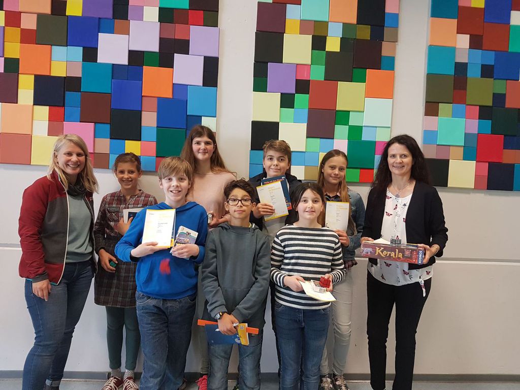 Die erfolgreichsten Schüler und Schülerinnen wurden von Schulleiterin Frau Braun und der Organisatorin des Wettbewerbs an der JWS, Frau Dieleman, geehrt. Sie erhielten hochwertige Spiele oder Bücher. Wir gratulieren den folgenden Preisträgerinnen und Preisträgern: