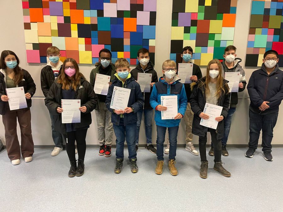 Besonders hervorzuheben ist der erste Preis von Silas Lavo, der mit seiner Leistung zu den besten 0,8% von über 200 000 Teilnehmern seines Jahrgangs deutschlandweit gehört. Herzlichen Glückwunsch!