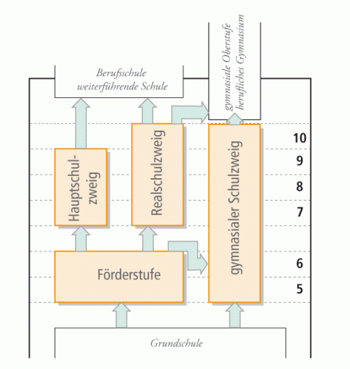 - einem Hauptschulzweig für die Klassen 7 bis 9 mit Hauptschulabschluss.