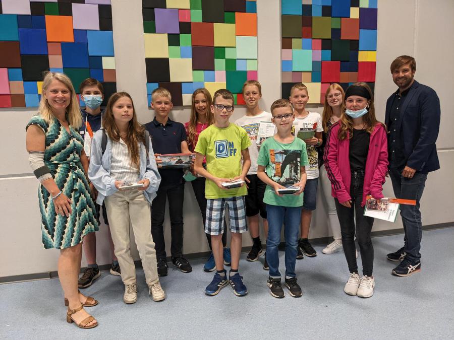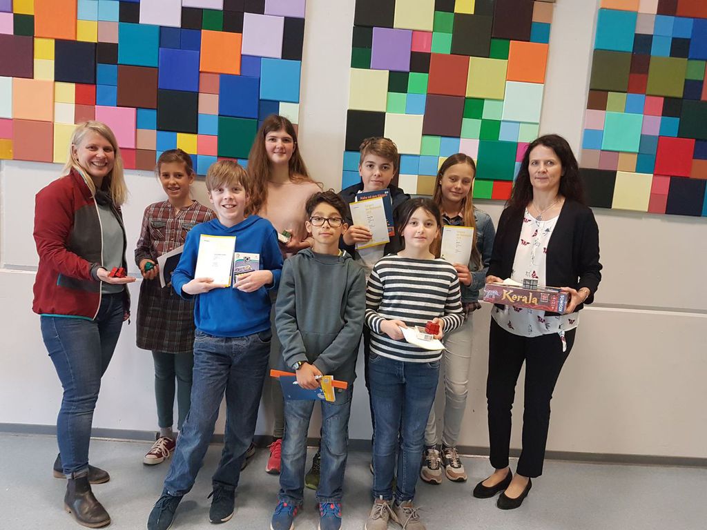 Die erfolgreichsten Schüler und Schülerinnen wurden von Schulleiterin Frau Braun und der Organisatorin des Wettbewerbs an der JWS, Frau Dieleman, geehrt. Sie erhielten hochwertige Spiele oder Bücher. Wir gratulieren den folgenden Preisträgerinnen und Preisträgern: